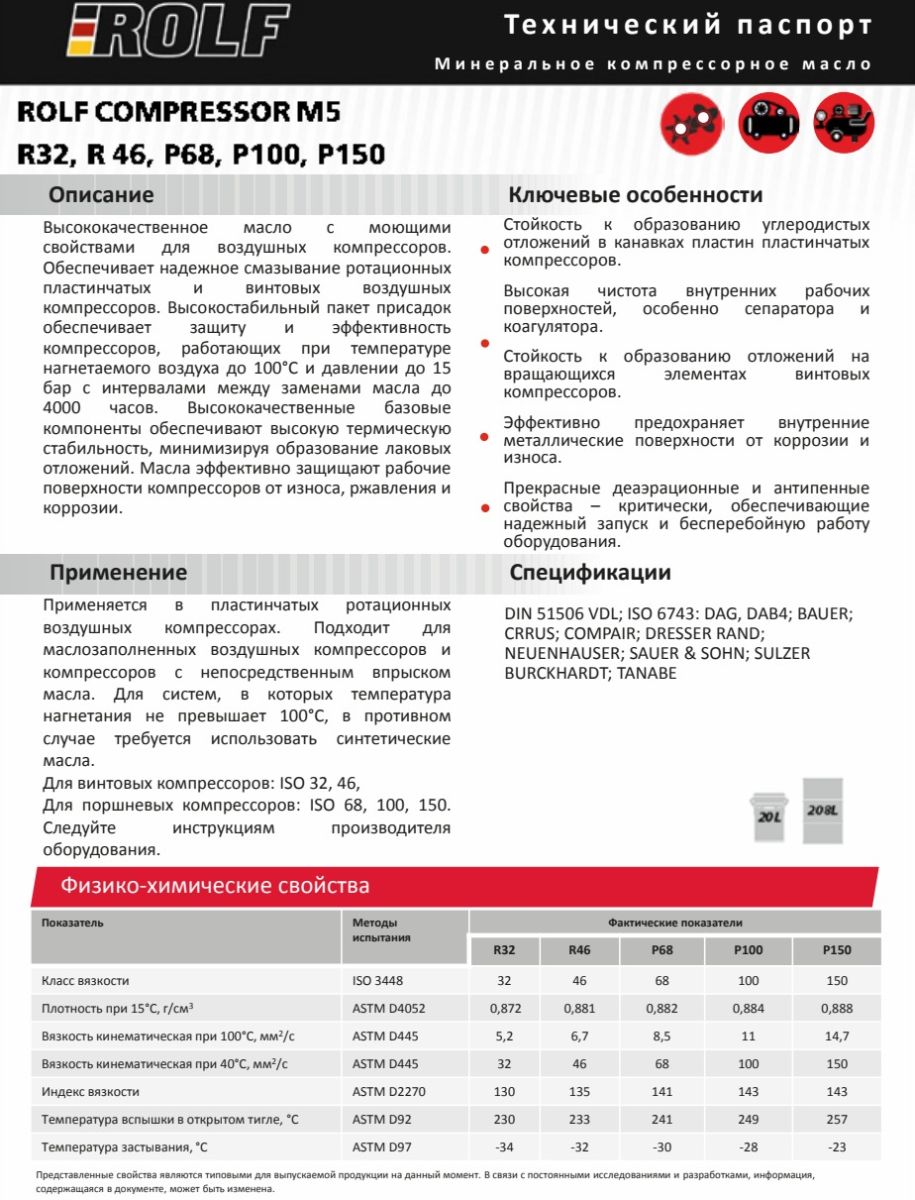 Масло для винтовых компрессоров ROLF COMPRESSOR M5 R 46 20л. 322573