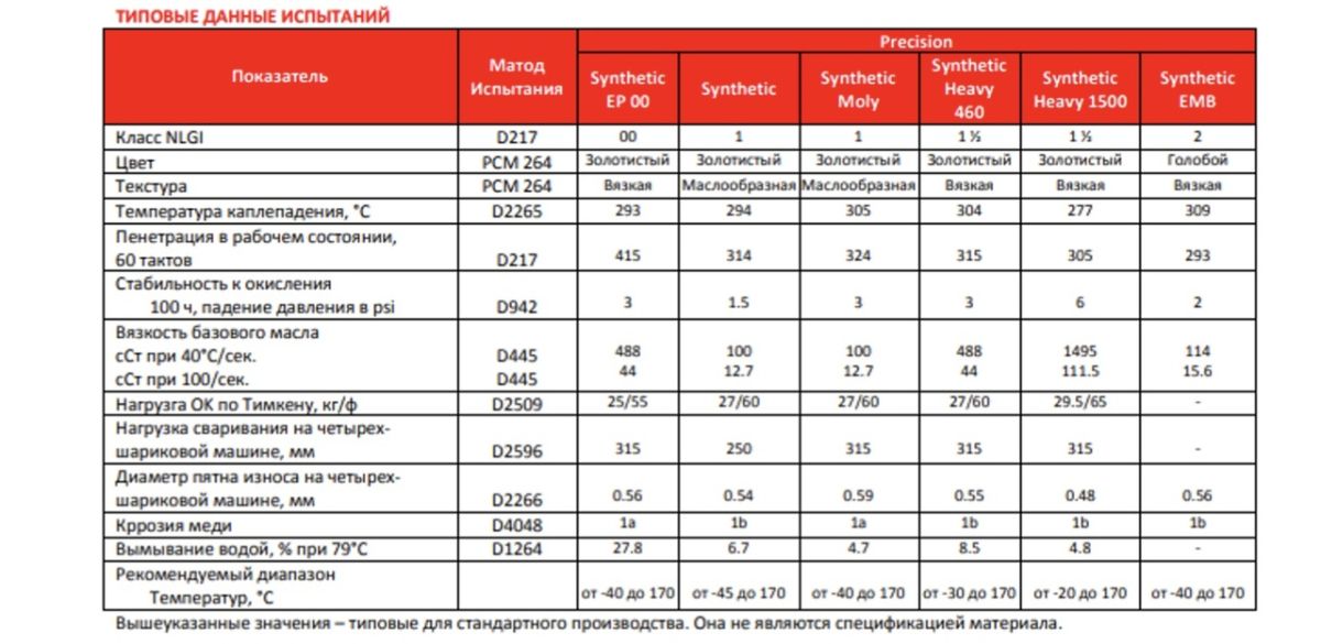 этого вида смазки варьируется от -40°С до 170°С.